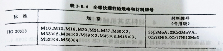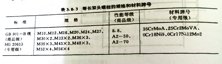 2、等長雙頭螺柱的規(guī)格及材料牌號如3.0.3所示。